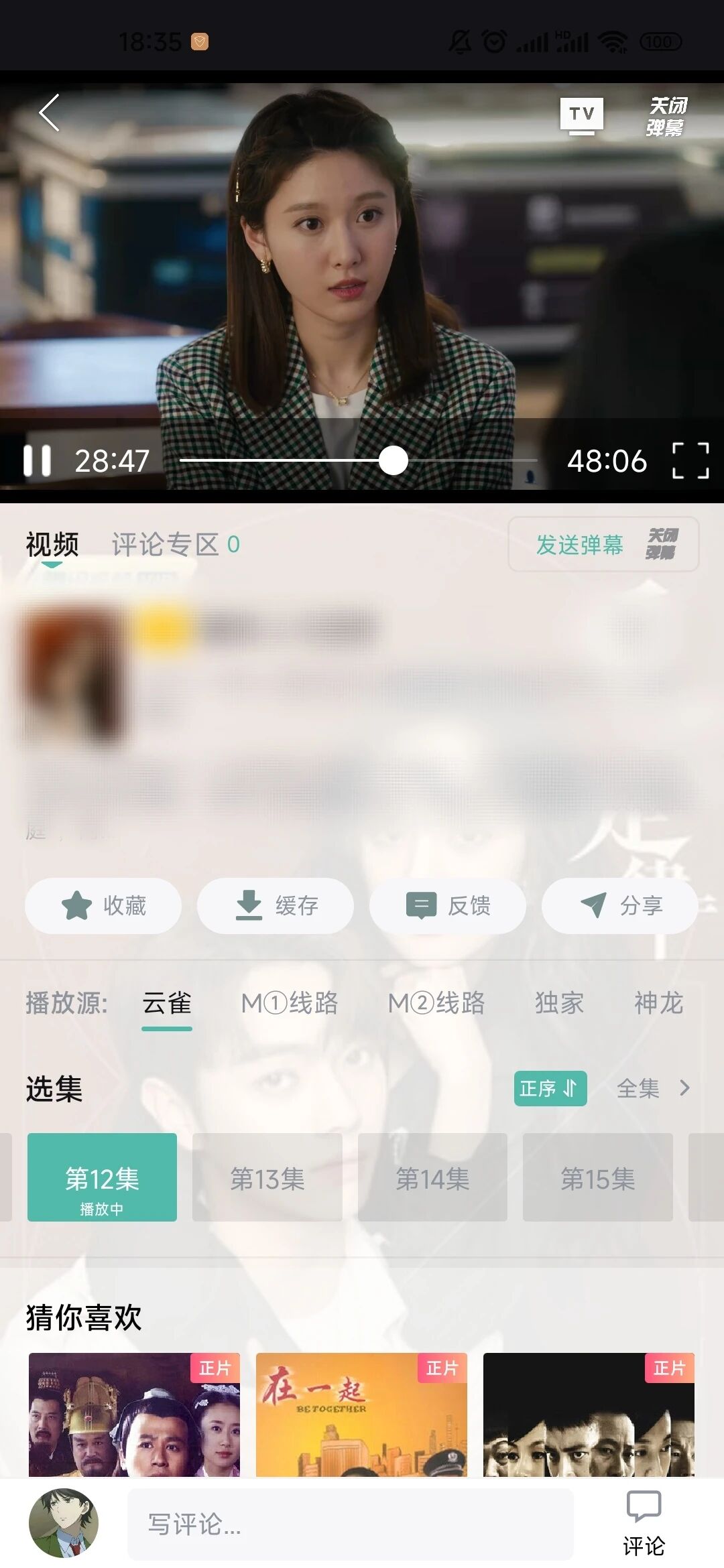 有一说一,这个软件的影视资源质量还是不错的,蓝光画质,流畅播放,还支持倍速、选集、换源、弹幕等功能,线路也有五六条。