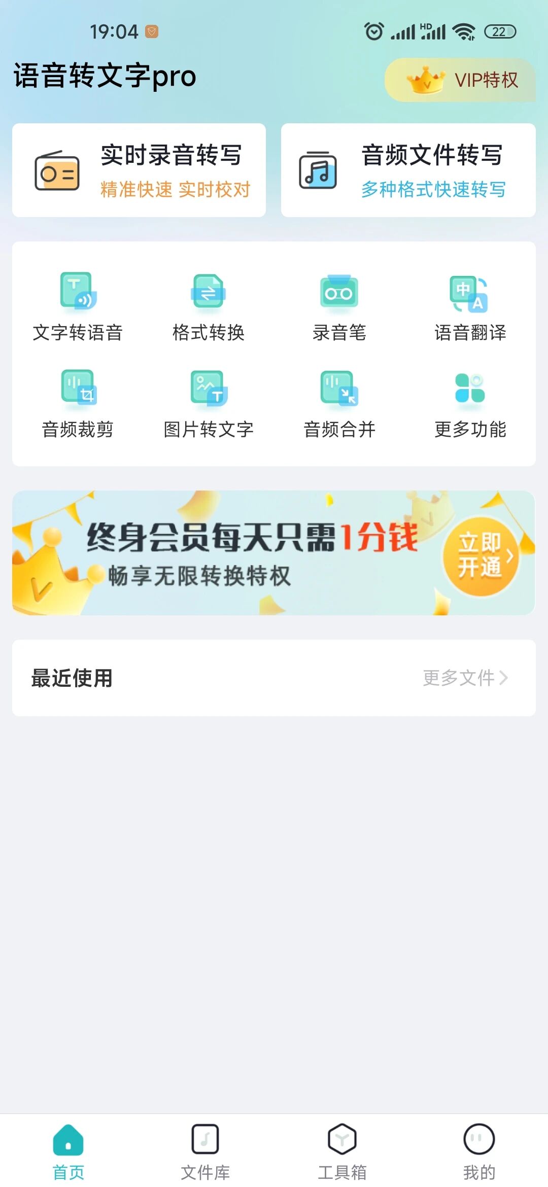 最近后台有人要语音转文字软件,本期就给大家安利一款最新修改版的,功能多,去限制,软件不免登就是永久会员,有需要登录的小伙伴们可以选择手机号登录的方式。