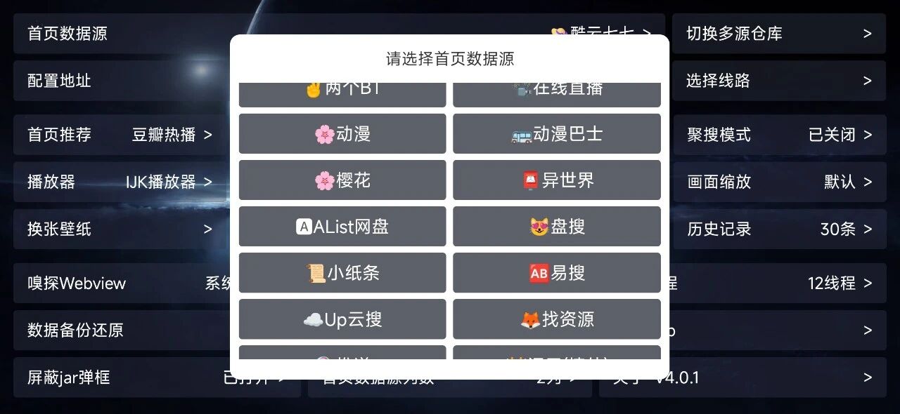 大家还是先在设置页面导入这个接口:https://agit.ai/Yoursmile7/TVBox/raw/branch/master/XC.json,软件UI布局上倒是没啥变化,主要是①增加了一个阿里播放器,在播放小纸条、阿里云盘资源的时候会很顺滑。