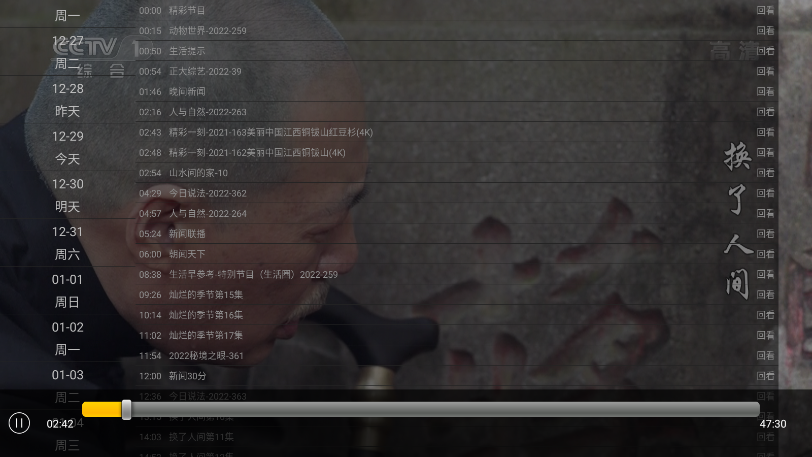 这款软件还有个很好用的回看功能,直接调出菜单页面,选择节目回看,大家点击自己要回看的日期即可,阿星试了一下一天内的完全没问题。