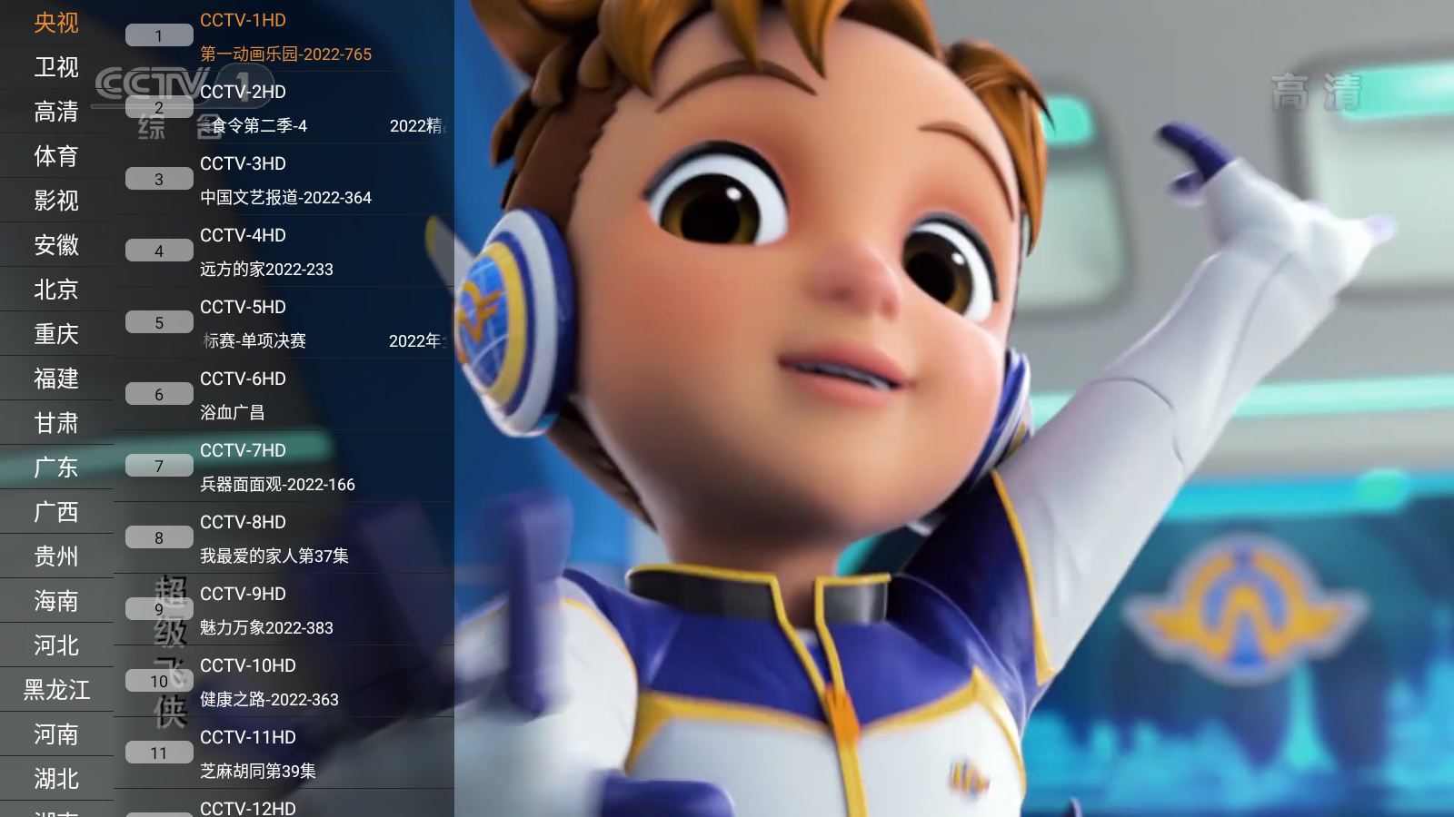 软件内置了央视、卫视、地方、轮播和网络等上千个频道,画质最低也是高清,而且播放起来非常流畅,可选线路也很多,每个频道都带有EPG节目单,非常方便追剧,此外还支持导入自定义直播源tvlist.txt。
