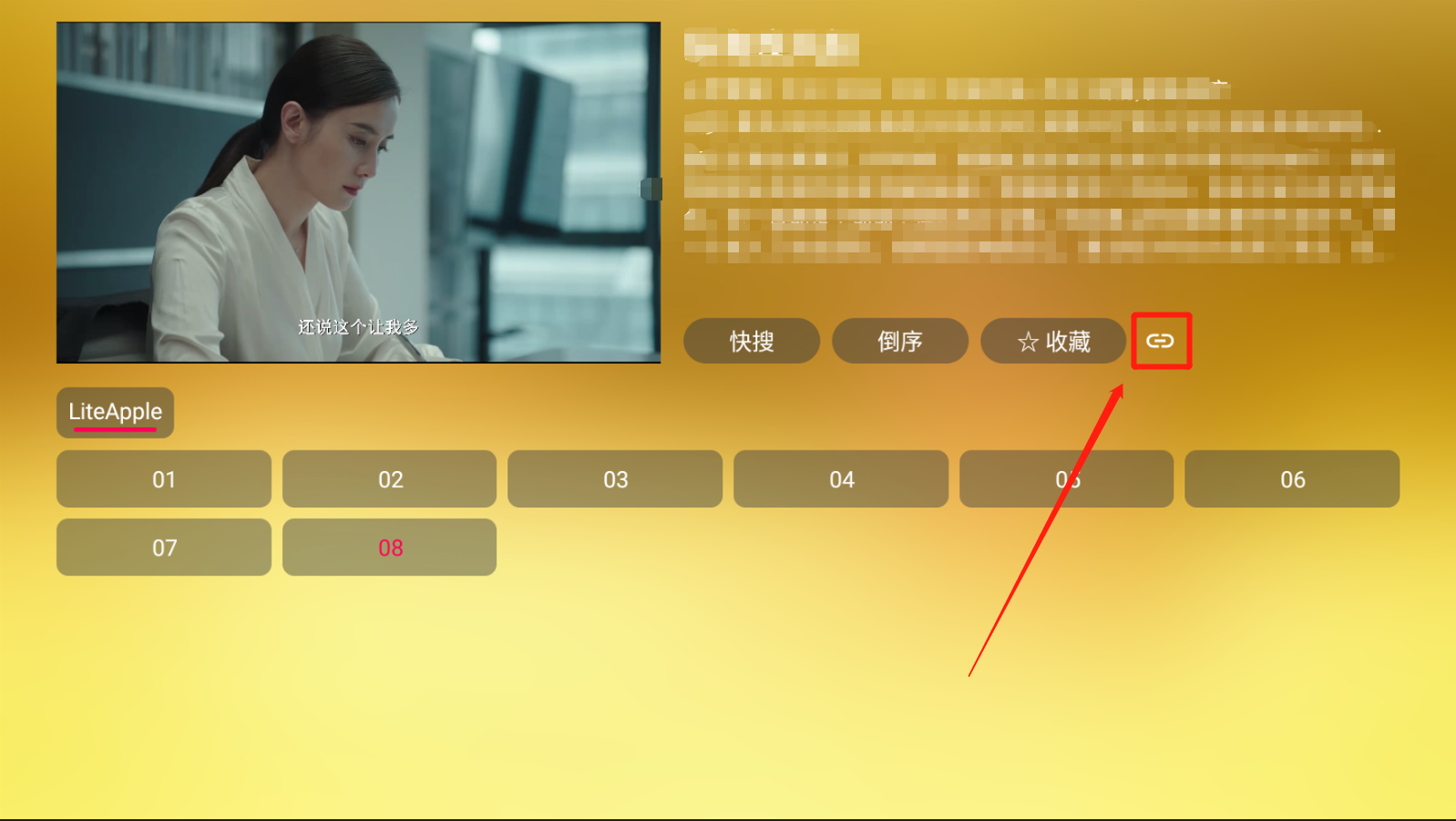 然后就是软件的影视详情页面,这个版本的不能通过idm缓存视频,但大家可以点击这个复制链接,然后在浏览器中缓存,播放器功能比较简洁,支持倍速、换集、去片头片尾,其他的就没有了!