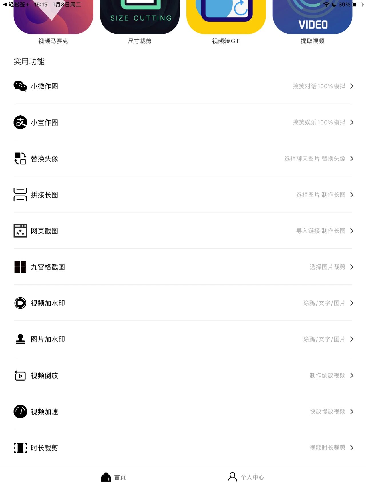 软件主要功能有替换头像、拼接长图、网页截图、九宫格截图、视频加水印/倒放/加速/马赛克/转GIF、图片加水印、时长裁剪、尺寸裁剪,以及小宝作图、小微作图、提取视频功能。视频提取功能其实同某些去水印软件一样,大家只需要复制链接,点击提取,就出现无水印版的视频了。