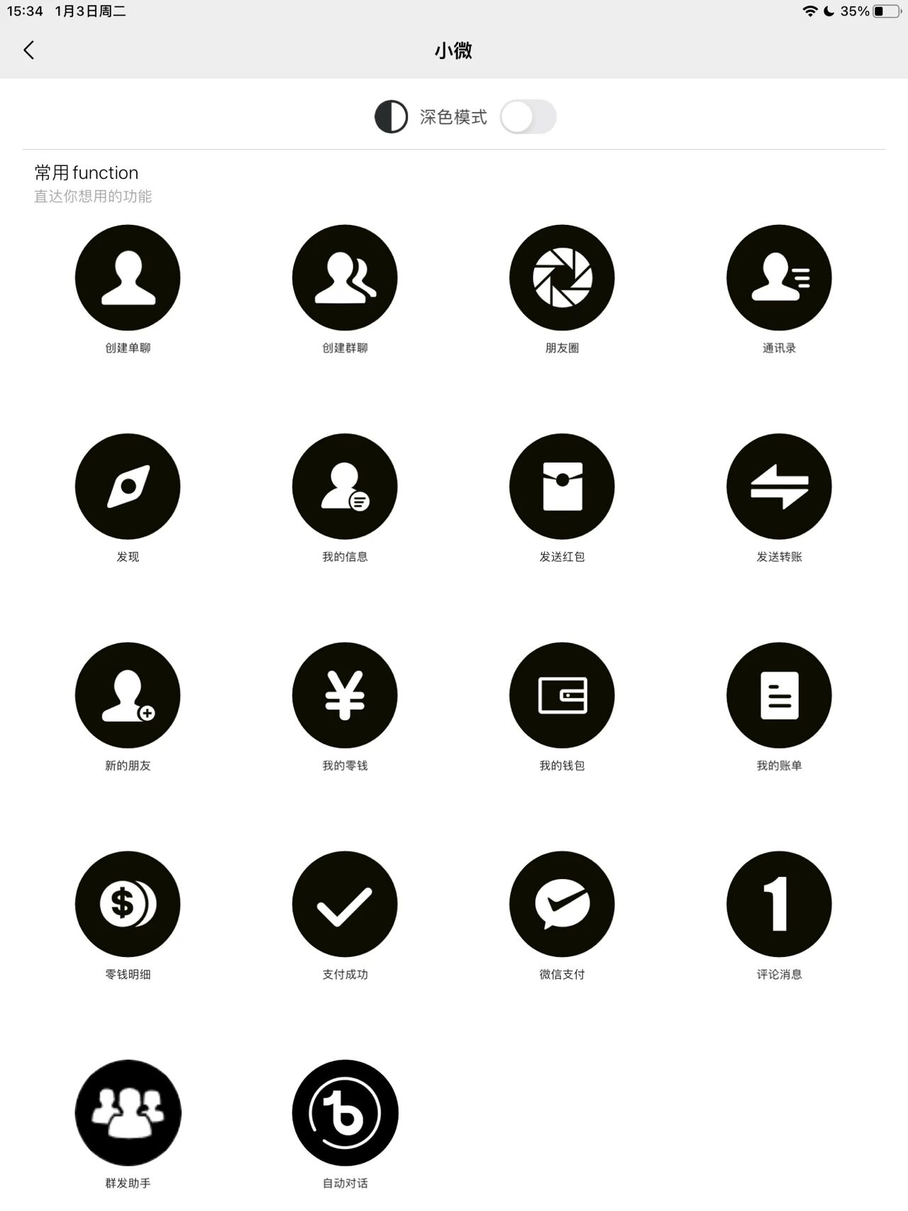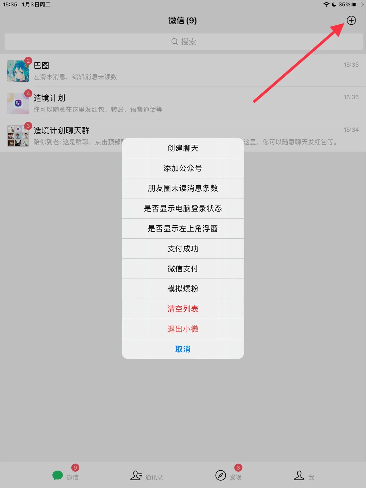 小微作图其实是wx应用的各种截图,什么群聊、聊天记录、收付款记录、好友列表、朋友圈等等,它还有小微模拟器,就在该页面最底部,作图更加方便,退出的话,就点击右上角的+号就可以了。