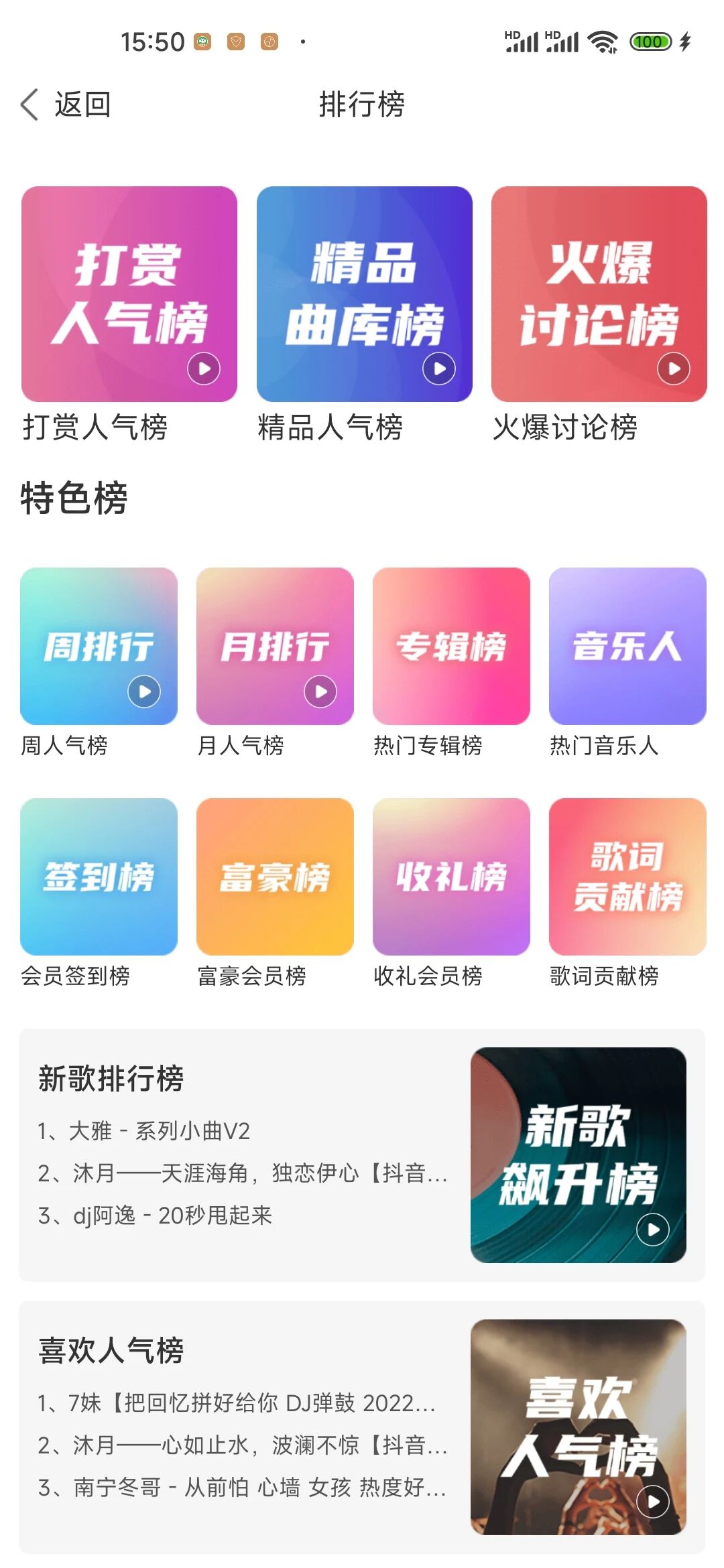 软件排行榜页面做的也比较完善,喜欢看榜单听歌的小伙伴们,可以逛一下,还有就是随身听功能,只要滑动屏幕就能切换下一个推荐,是不是很不错!