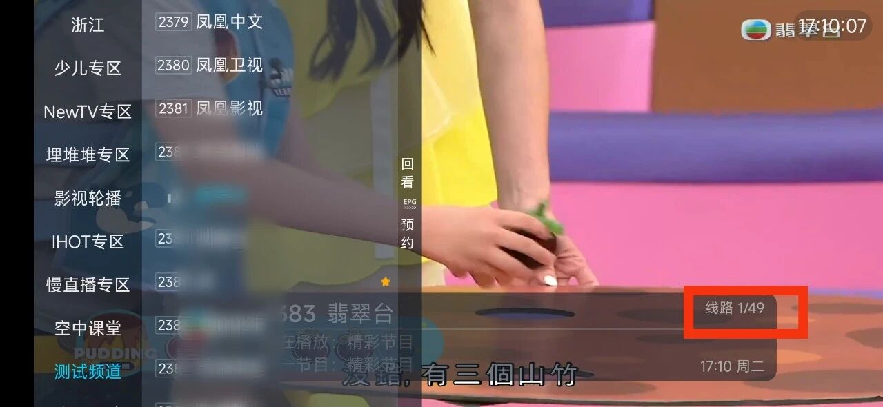 世界和岗苔频道就在测试频道分类中,而且港台频道的节目源非常多,看下图,49条备用翡翠。