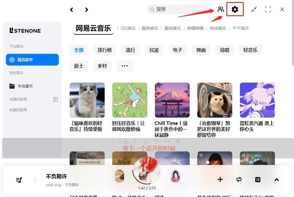 首页是各大厂的歌单推荐,假如你喜欢它,还能添加到本地歌单,,你也可以直接搜想听的音乐,输入关键词或者歌手名字就行,虽然不支持下载,但算不错了!
