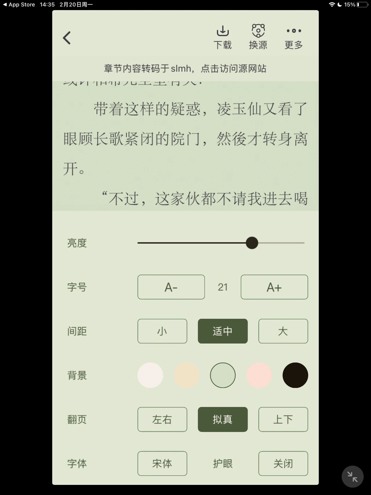 内置的阅读器支持下载、换源、字体、背景色、弹幕等多个功能,还是蛮强大的,虽然书源不多,但热门的都能找到,苹果端的小伙伴们不要错过了,说不定什么时候就下架了!