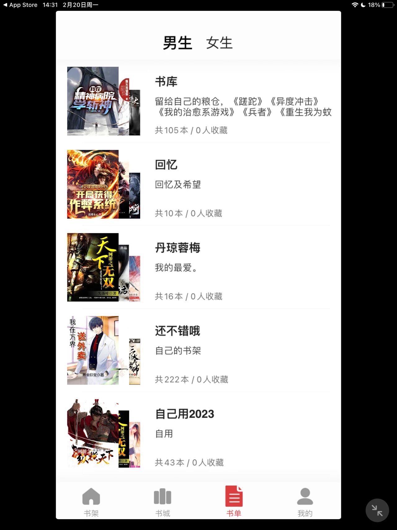此外,软件还带有专门的书单(小说)页面,书荒的小伙伴们可以来这个板块看一下!