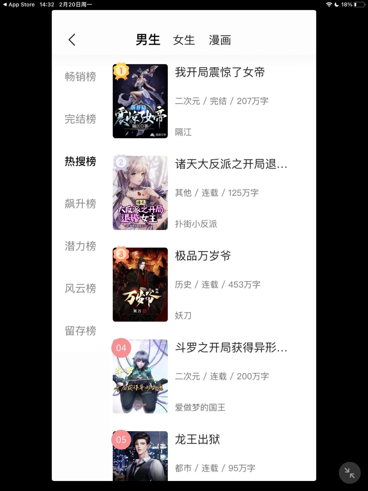 今天跟大家分享一款App Store新上架的追书神器,免登无广告,资源也很丰富,测评设备用的ipad,所以截图会有黑边!软件首页默认是小说页面,切换到男/女生板块下会有小说榜单展示,漫画板块下就是各种漫画推荐了,分类页面入口在页面的右上角,不要忽略了!