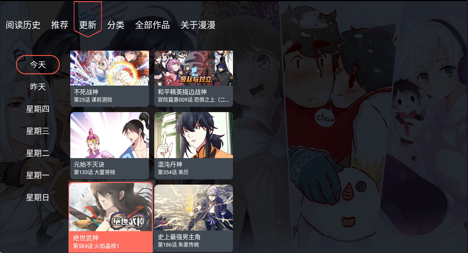软件上所有资源都是免费阅读的,而且每日都会更新,同时更新日历和分类功能等都有,看漫画用电视也是一个不错的体验哦!