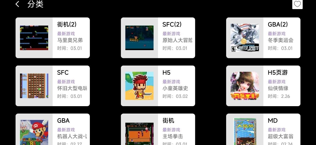 软件首页是一些h5游戏推荐,点击右上角顶部,进入分类页面下,资源数量超多,什么拳皇、大富翁、马里奥等经典都能找到,而且你也不需要游戏手柄,通过曾经分享的悟空遥控,直接手机操作!