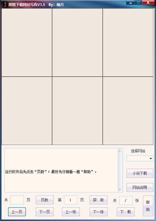 软件解压完成后是空白,首先要选择一个站点,然后在点击页数,最后点击获取,就有资源了。