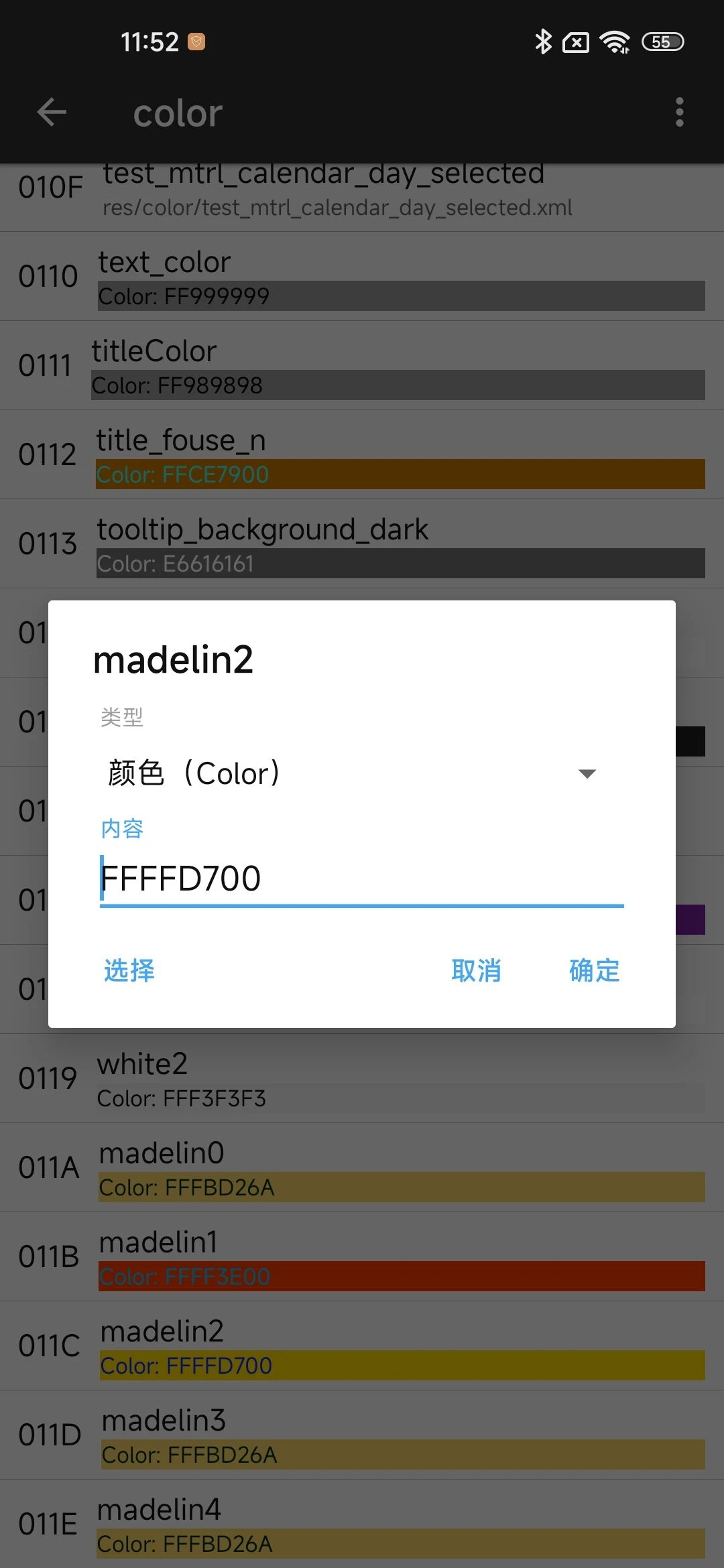 最后是颜色的更改,要用mt打开resources.arc文件,选择Arsc编辑器,然后点击最底部的那个(com.xxx.xx),选择color,进去后还有个color选择它,这时候滑到最底部,可以看到几个颜色,大家对照着APP自行更改就行