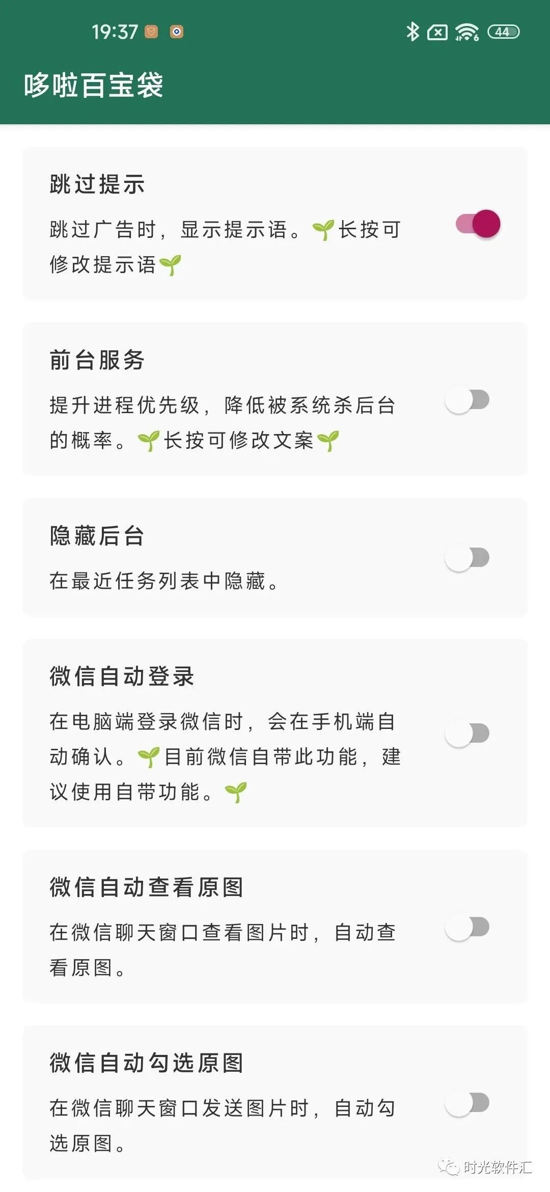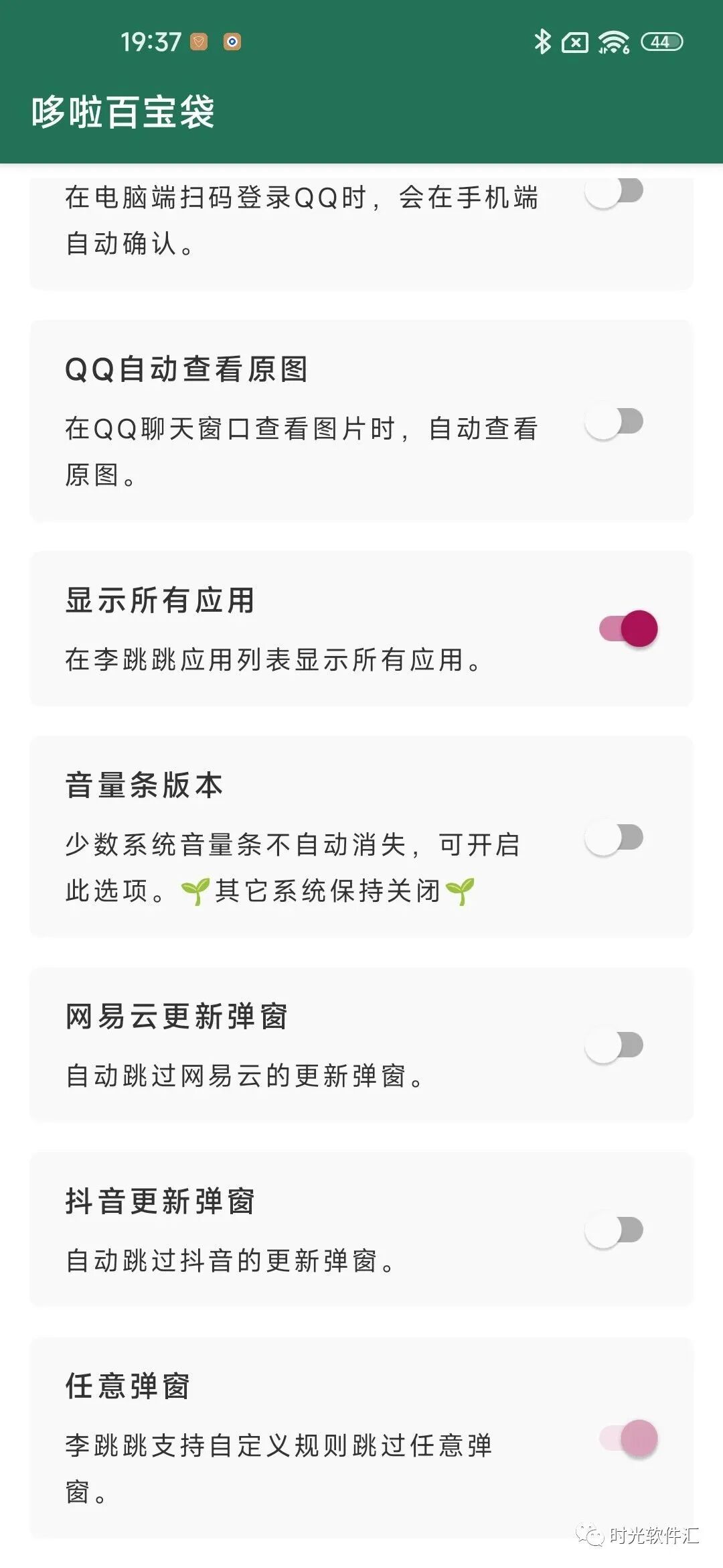 此外,软件还内置了跳过更新弹窗、微信/QQ自动查看原图等实用小功能。