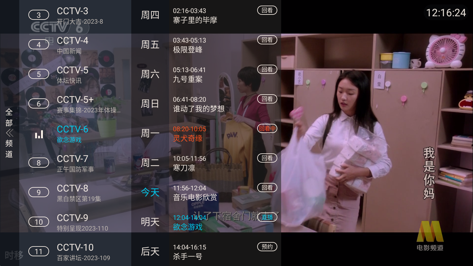 同时,软件内置好了7天时移回看源仅限央视、卫视。推荐移动分类下5-6线路。