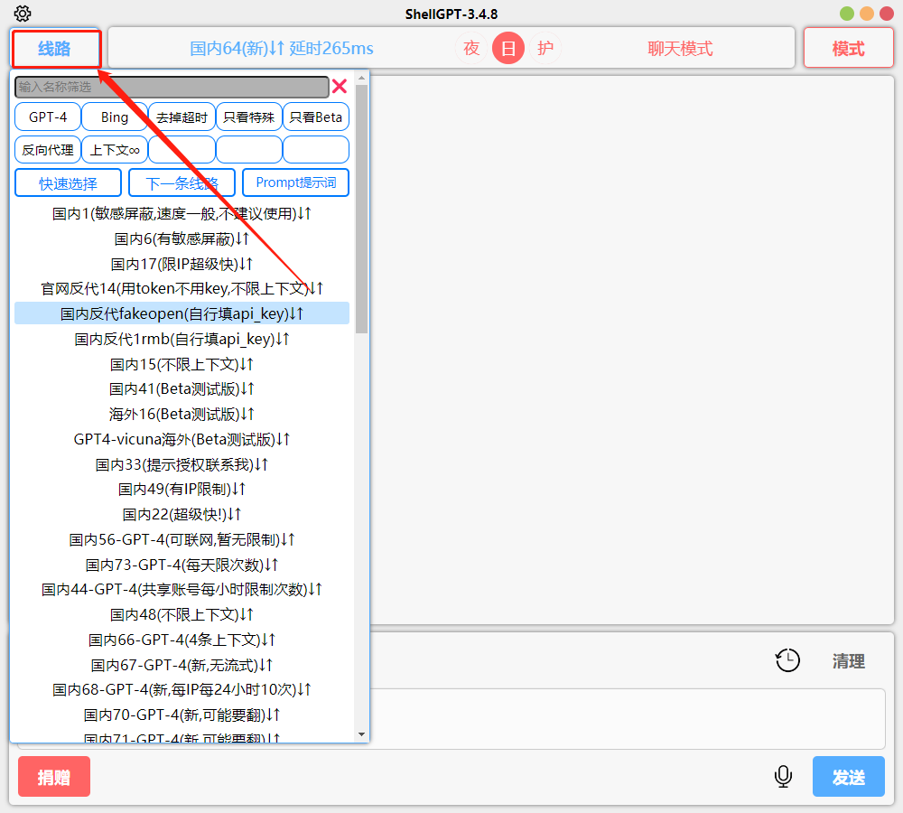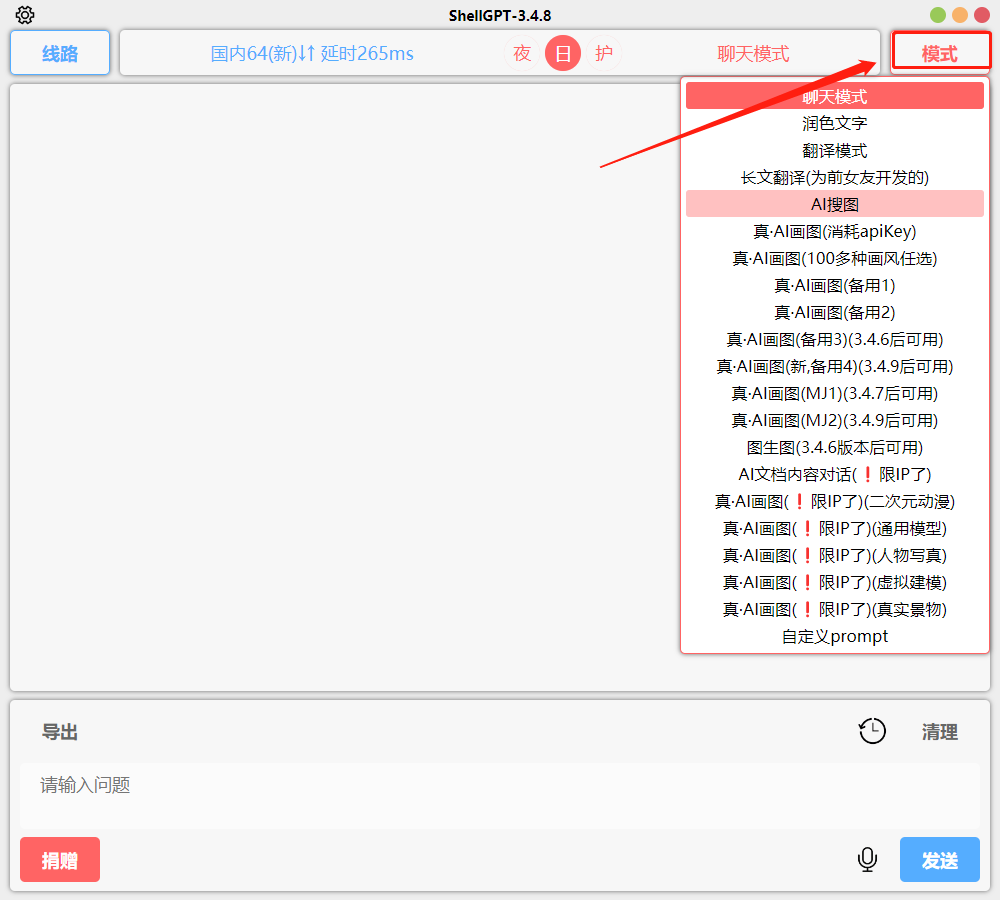 软件使用非常简单,打开后,先选择线路(左上角点击后,会有几十条),大家根据需求自行选择就行了,然后直接在底部输入问题就能使用了。