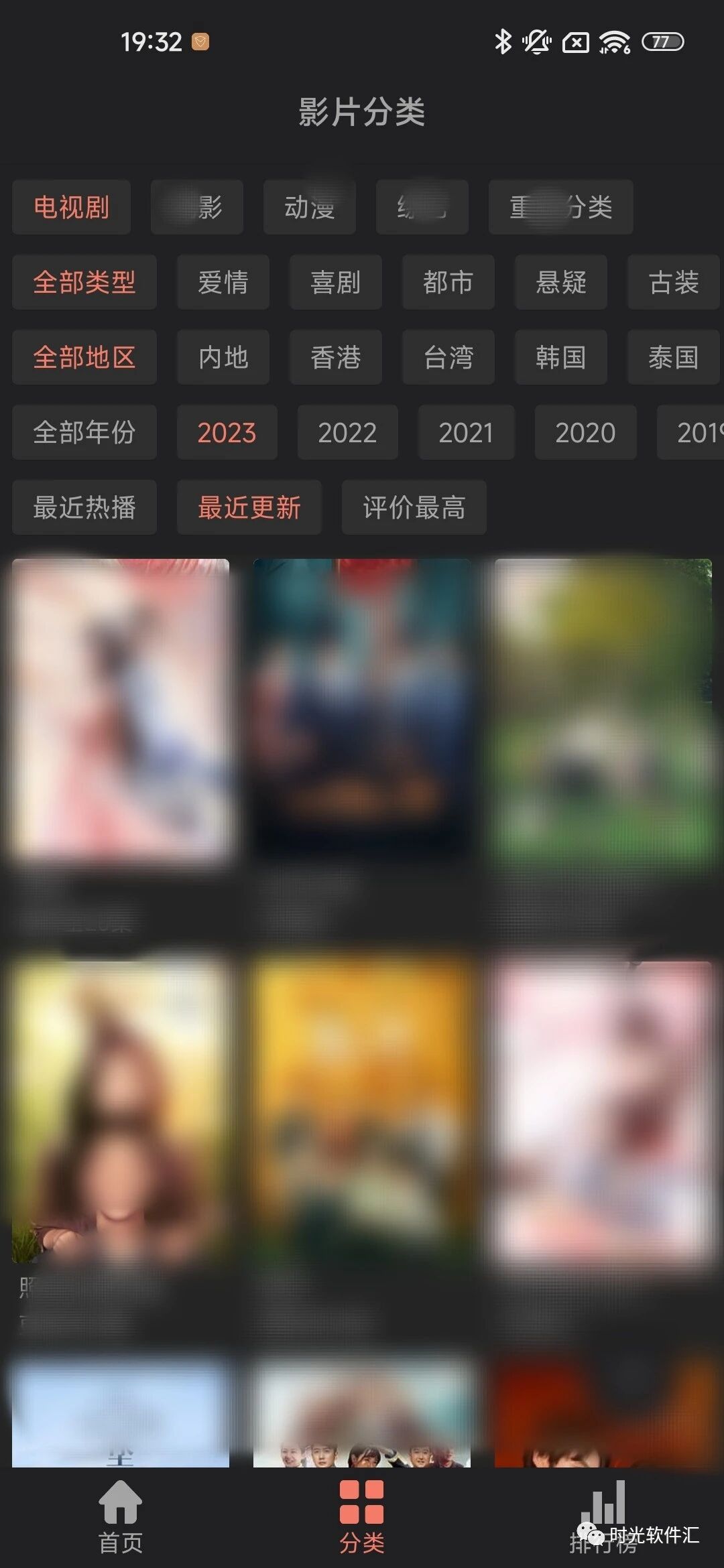 首页是一些追剧推荐,排行榜的话只有电视剧的,至于分类板块,类型、地区、年份、排序、分类这几个筛选标签都有​,找剧还是蛮容易的。