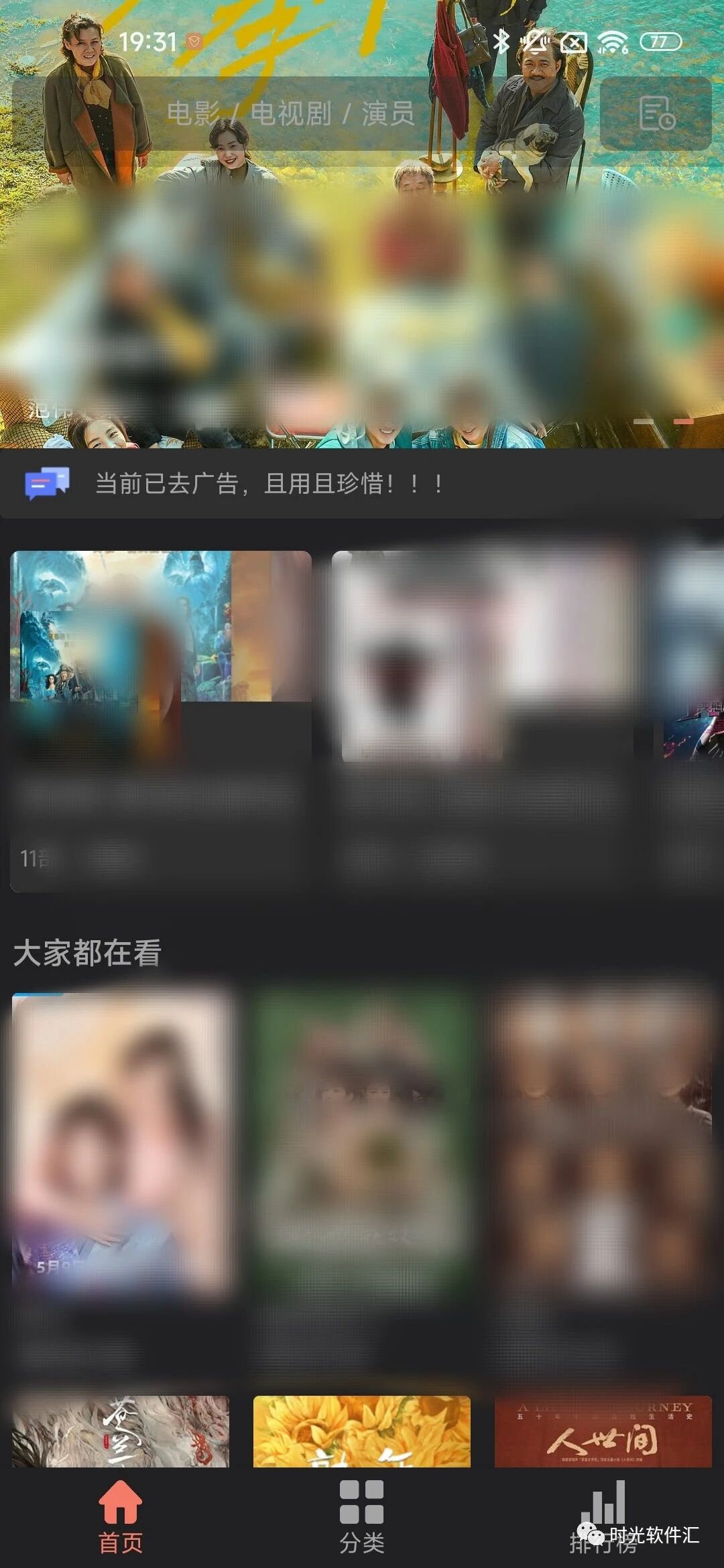 软件当前清新无广告​,无需登录,仅有首页、分类、排行榜三个板块,非常简洁!